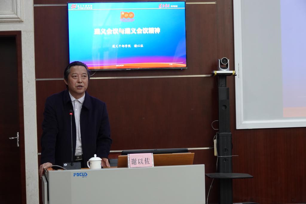 谢以佐副董事长的讲授图文并茂、生动活泼,他结合遵义会议召开前后的重要历史事件,从“为什么召开遵义会议”、“遵义会议是怎么召开的”、“怎样弘扬遵义会议精神”等三个方面讲述了中国共产党从挫折走向胜利的伟大转折和历史经验;从微观、中观、宏观三个方面深刻解读了会议的精神内涵:即坚定信念、实事求是、独立自主、民主团结;以丰富的理论视角,阐述了中国共产党艰苦卓绝、光荣辉煌的奋斗历程,并就如何弘扬遵义会议精神、加强党的建设、提高党员党性修养、加强党的作风建设,从而推进全面从严治党作了深刻阐述。他强调,遵义会议的精神实质就是“讲政治、守纪律、敢担当”,全体党员要做到在思想上统一、行动上一致、力量上同向;对于共产党员来说,最重要的就是要做到忠诚、服从、奉献,具体到行动上就是要做到“五个牢固”、“五个必须”、“五个敢于”。党员干部要传承红色基因、发扬优良传统,深入学习和领会遵义会议精神的实质,在党史学习中淬炼党性、洗礼精神,提高政治站位,增强政治定力,坚定政治信仰,做到对党绝对忠诚!
