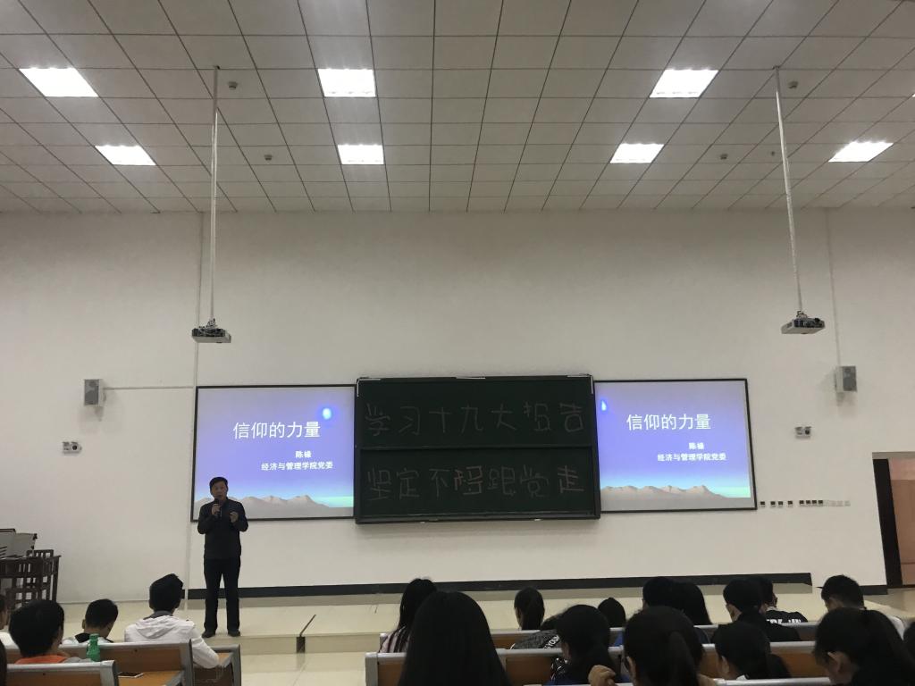 活动伊始,吕萍在中国共产党第十九次全国代表大会召开之际号召2017级同学心向党、跟党走,坚定理想信念,保持崇高使命感。活动中,全体师生一同观看了大型纪录片《信仰的力量》选集。该片通过采访老党员述党史,忆党恩,深刻阐述了共产党员的人生观、价值观,让大家看到了老一辈共产党人团结一心、众志成城的宝贵精神,看到了前辈先烈们自强不息、勇于拼搏的高贵品德,更看到了信仰的力量。